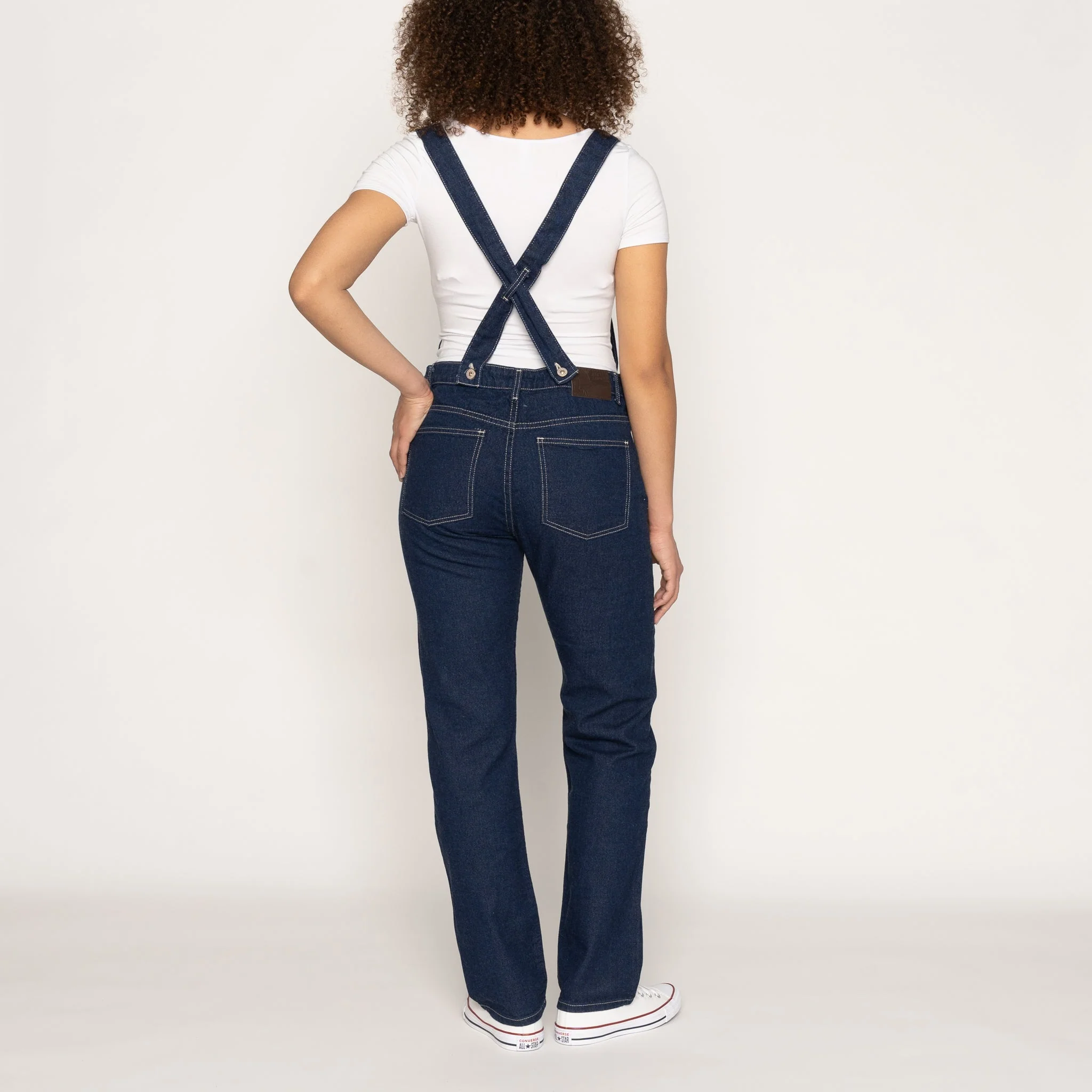 The Straight Leg Overalls are a relaxed straight-fit one-piece garment with a bib front and crisscross over-the-shoulder straps.